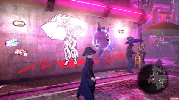 El último personaje del que me gustaría hablar es de la propia Kanai, la ciudad del juego. Un sitio tan corrompido por la asosiación Amaterasu y los Pacificadores, su fuerza paramilitar, que ya sería totalmente decadente sin la necesidad de que lloviese constantemente. La vamos conociendo poco a poco, con cada capítulo y las zonas nuevas no hacen más que demostrar el contraste existente de aquellos que apoyan y se benefician de la compañía y los que se ven obligados a esconderse fuera de los focos para intentar sobrevivir. Todo esto se ve durante la historia, pero se profundiza más en unas misiones secundarias que, sin dejar de ser las típicas misiones de recadero, ayudan a construir el universo en el que transcurre Master Detective Archives: RAIN CODE.