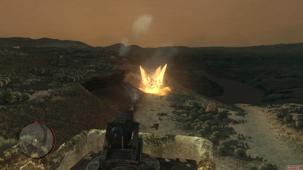 ¿Y qué diferencia a Red Dead Redemption de otros juegos de acción o de disparos? La clave está, sin duda alguna, en su mecánica estrella: el Dead Eye. Si activamos el Dead Eye, el color de la pantalla cambia y el tiempo se ralentiza bruscamente, dándonos más tiempo para apuntar, fijar uno o varios blancos y disparar. Toda una fantasía de poder que hace honor a las míticas películas del género, permitiéndonos lograr una rápida batería de disparos que firmaría el mismísimo Lee Van Cleef, y que además resulta especialmente útil si nos encontramos rodeados de enemigos. Eso sí, no es un poder infinito, contamos con un tiempo limitado y, al acabarse, necesita recargarse. O eso, o tomar un trago de licor para recuperar la «inspiración».