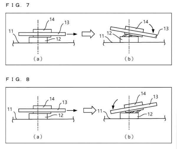 Pero estas no serían las únicas novedades. Además de lo anterior, el control contaría con un accionador extra. Como se ve en las imágenes de las figuras 7 y 8, además del movimiento en los ejes X e Y (eje Z aparte), el mando tiene la posibilidad de inclinarse. En el ejemplo mostrado en la figura 8, el jugador puede mover el mando a la derecha y además inclinarlo hacia la derecha o hacia la izquierda, activando una acción adicional.