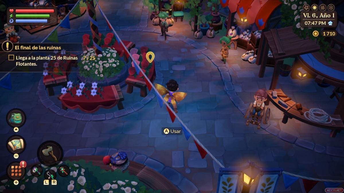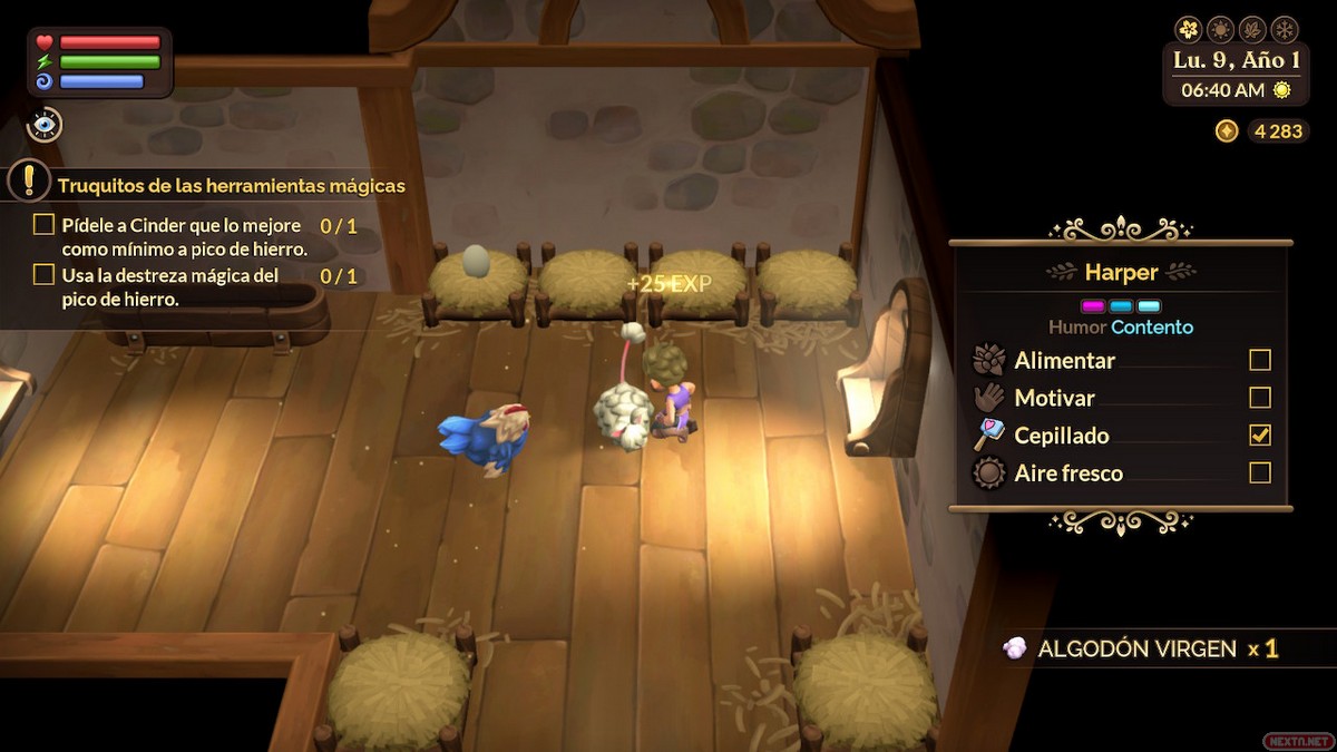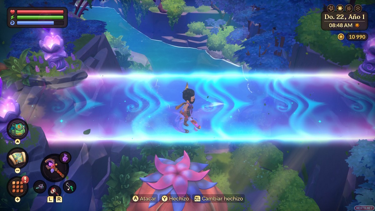 Casi todo lo comentado hasta ahora entra en los parámetros habituales del género, pero hay un aspecto que hace de Fae Farm una experiencia distinta: el halo mágico que lo envuelve. Este halo se nota por todas partes: en los personajes de la isla, en algunas de las criaturas que la habitan, en la varita mágica que hace las veces de instrumento de combate y que va adquiriendo poderes que influyen en la exploración y en la pelea, y en la Destreza Mágica, una habilidad especial y única de cada una de nuestras herramientas de trabajo.