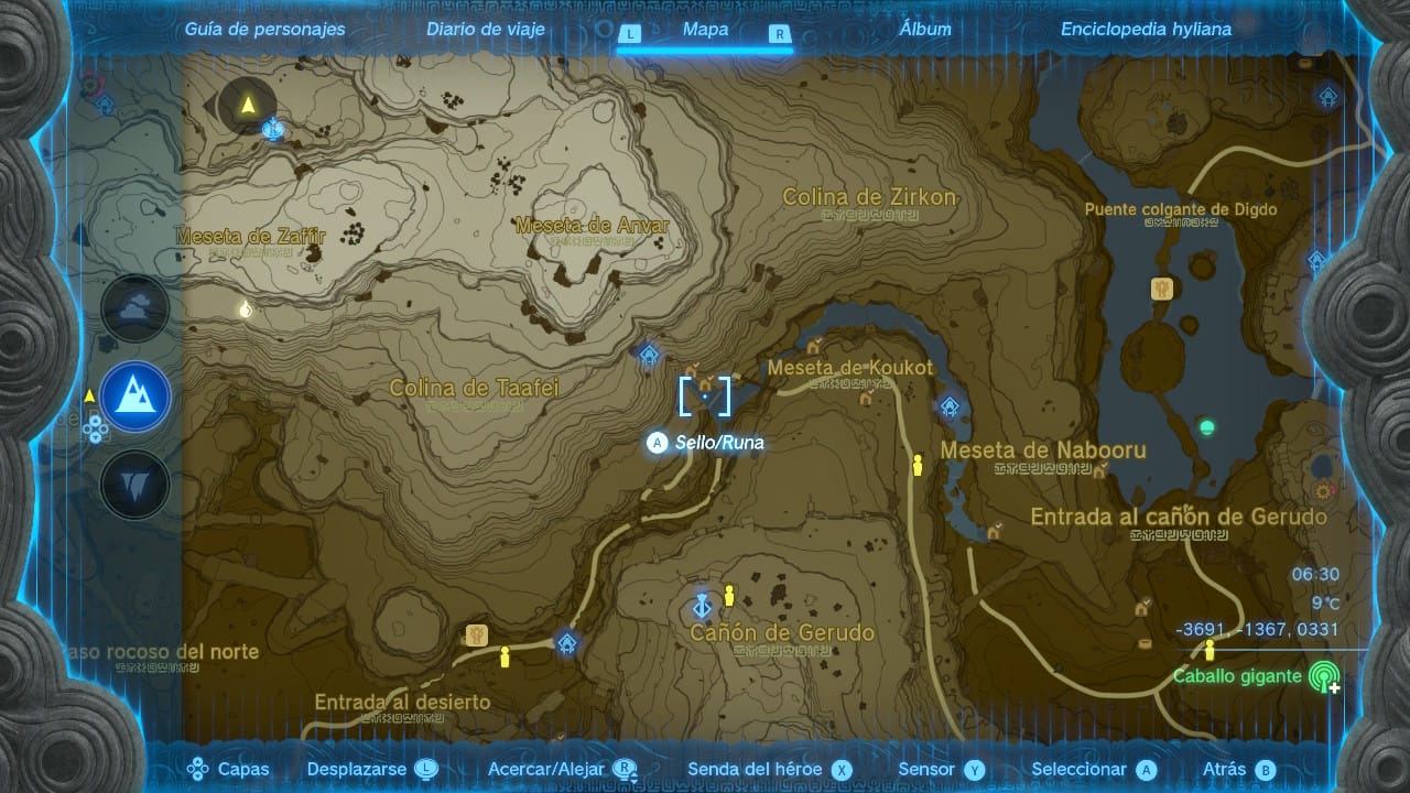 Una vez te vistas con él, viaja a la garganta del Cañón Gerudo para entrar en el Centro de Oficiales del clan Yiga. Este lugar está ubicado en el pasillo que hay excavado en la ladera de la colina de Zirkon, y para llegar hasta allí hay que cruzar el puente de la Meseta de Koukot. La mejor opción es viajar hasta el santuario de Raquda’it, ascender hasta la meseta, y desde ahí seguir el camino hasta el puente. Al centro de oficiales se pasa por una puerta custodiada por dos estatuas de rana.
