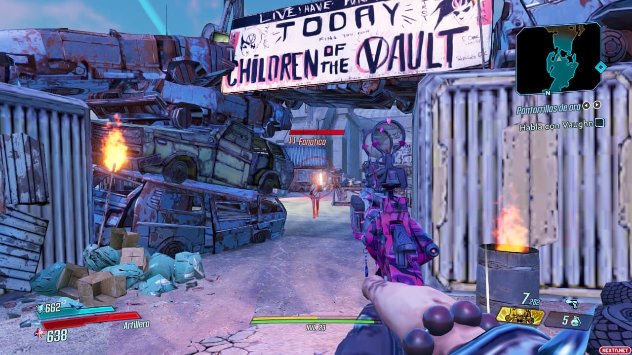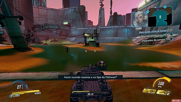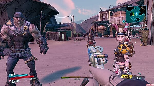 Hay sacrificios evidentes a simple vista: las texturas tienen una calidad baja, los modelos de los enemigos y NPCs tienen menos polígonos que los personajes principales, la distancia de dibujado es pequeña, generando mucho efecto de popping, y la iluminación tampoco brilla, precisamente hablando. Todo esto hace que el juego vaya fluido generalmente, pero también provoca que se vea genuinamente peor que otras versiones y algunas zonas sufren eso en particular. Por suerte, desde sus inicios la estética de la saga se ha caracterizado por el uso del cellshading, lo que ayuda a disimular bastante bien este bajón gráfico. ¡Ojo, no me malentendáis! El bajón gráfico es notable, pero todos los elementos son legibles a simple vista y no estamos hablando de uno de esos casos como el ARK original o el más reciente Mortal Kombat 1. Es como si el juego fuese en la configuración baja en un ordenador, completamente jugable y disfrutable de principio a fin, pero no tan visualmente impactante. Sin embargo, resulta curioso que debido a estos sacrificios, los títulos de la Borderlands Legendary Collection se vean mejor que la entrega más nueva.