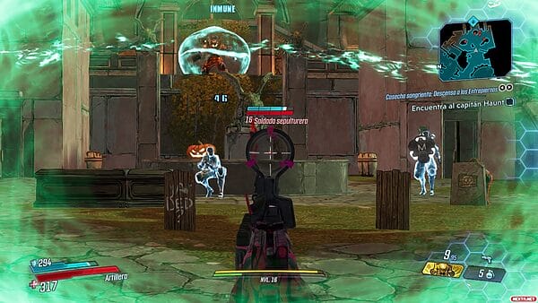 Pero la verdadera chicha del asunto y lo que de verdad revoluciona Borderlands 3 respecto a sus anteriores entregas es el Modo Caos. Activar este modo nos permite elegir entre 11 niveles distintos de dificultad en los que se modifican comportamientos de nuestro personaje y enemigos, generalmente para hacernos las cosas muy muy difíciles, con el objetivo de potenciar hasta en más de un 1250% la cantidad de botín conseguido. Y claro, a mayor cantidad de botín, más probabilidades de conseguir buen equipamiento, que nos permita enfrentarnos a desafíos más difíciles, para conseguir más botín, etc., etc. Y creedme estos cambios afectan de manera súper notoria el comportamiento de los enemigos y cómo afrontarlos y, por ende, la jugabilidad.