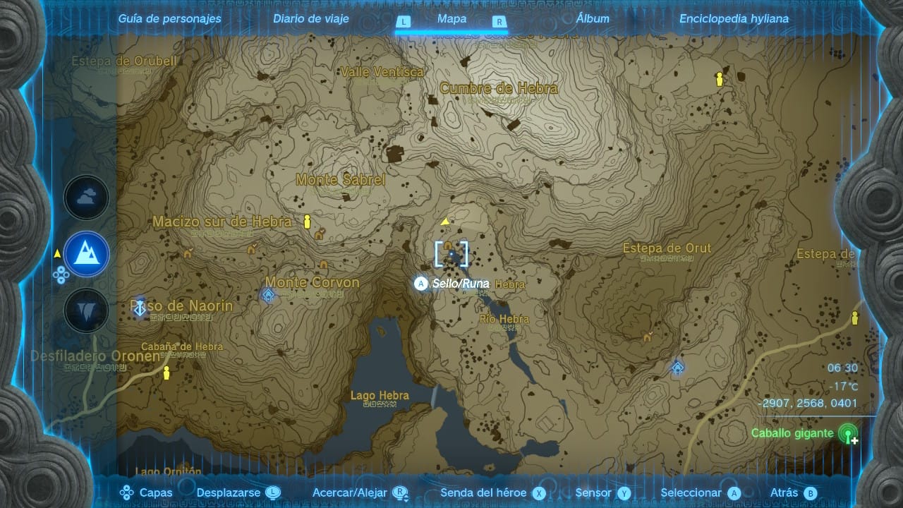 La parte inferior del set de la ventisca está escondida en la Cueva del manantial de Hebra, al este del Lago Hebra. Se encuentra justo en el vértice norte del manantial, pero no hay ninguna referencia cercana a la que valga la pena teletransportarse. Si has avanzado lo suficiente en la historia, tu mejor opción es saltar desde el templo del viento. Ten en cuenta que la cueva es, como su nombre indica, un manantial, y por lo tanto está llena de agua helada. El altar está al fondo, en la pared derecha, y tendremos que acceder a él por una oquedad que queda entre bloques de hielo inescalables. No podemos nadar ni escalar, así que tendrás que usar la imaginación. Y, si no estás muy por la labor, fabrica una balsa propulsada y una pasarela (con un par de placas de hielo bastaría).