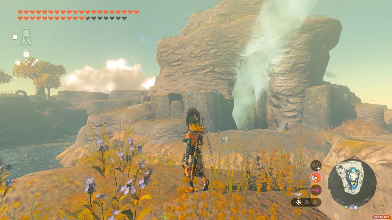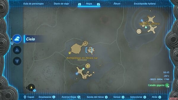 Para conseguir las grebas de zonnanio tenemos que llegar, en primer lugar, al archipiélago de Akkala sur. Es relativamente fácil hacerlo si tienes un buen nivel de vigor saltando desde la atalaya del monte Ulri, aunque lo óptimo es contar con el poder del sabio del viento. Desde aquí hay que viajar a la Isla de la Cantera, que está sobre la Península Espiralia, y en concreto hay que ir a la isla que alberga el santuario de Guia’un. El primer consejo que necesitas: en tu periplo encontrarás varios santuarios. Actívalos todos, porque viene genial tener puntos de teletransporte cerca. En el archipiélago de Akkala sur tendrás algunos materiales para construir un planeador, pero dependerá mucho del nivel en el que llegues a esta búsqueda que sean suficientes. En nuestro caso, te recomendamos echar mano de la alforja y sacar al menos tres turbinas, un timón, y baterías extra a cascoporro.