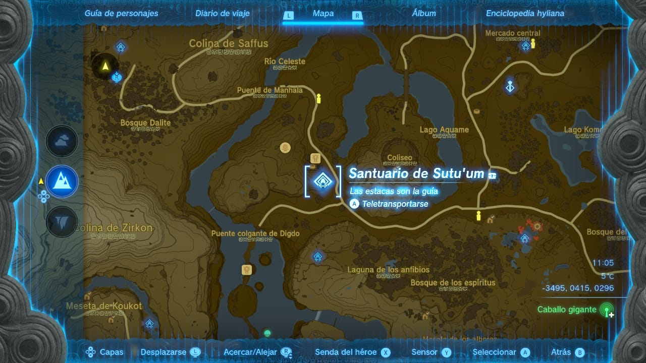 El acertijo nos lleva al Coliseo, un lugar situado al suroeste de la Llanura de Hyrule, justo al este de la Posta de la llanura. El teletransporte más cercano es, por tanto, el santuario de Sutu’um. Para conseguir esta prenda, lo más recomendable es acabar con el griock. De lo contrario, nos molestará muchísimo durante el resto de la misión.