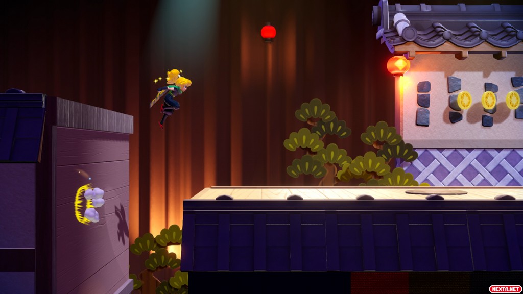 En Princess Peach Showtime!, la jugabilidad es muy sencilla, tenemos un botón para saltar, nos desplazamos con el joystick izquierdo y contamos con otro botón para utilizar las habilidades únicas de cada transformación. Todas estas transformaciones de las que estamos hablando, hacen de potenciadores o «Power-ups» si os gusta la denominación anglosajona, pero con un pequeño giro de tuerca. Las fases de este título se representan como pequeños actos teatrales y cada acto es temático según la transformación. Es decir; en un acto donde la transformación es Peach Ninja, por ejemplo, la ambientación es acorde a la temática ninja y el propio nivel se adapta a las habilidades únicas de esta transformación. Cabe destacar que aunque hayamos hecho alusión a los potenciadores, a diferencia de lo que estamos acostumbrados en títulos de Mario, por ejemplo, estas transformaciones son permanentes durante el acto, ya que necesitamos esas habilidades para avanzar por la fase.