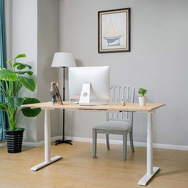 Ya lo hemos comentado unas líneas más atrás, si por algo destaca el escritorio de altura ajustable E7H es por la calidad de sus materiales. No en vano, su estructura ha sido fabricada en acero al carbono de alta calidad. Disponiendo de diversos colores tanto para la estructura como para el tablero y pudiendo cuadrar la mesa con tableros de hasta 80 cm de grosor y entre 1,20 y 2 metros de anchura. Por cierto, la estructura queda totalmente abierta y el espacio para meter las piernas o la silla gaming más aparatosa del mercado es más que suficiente. El producto también se siente muy estable. Algo que se logra gracias a su peso y a un sistema de patas regulables en altura.