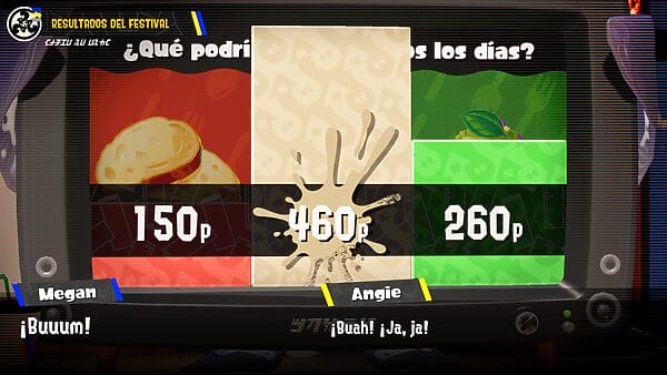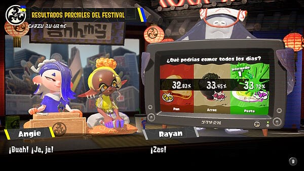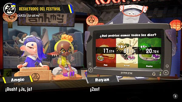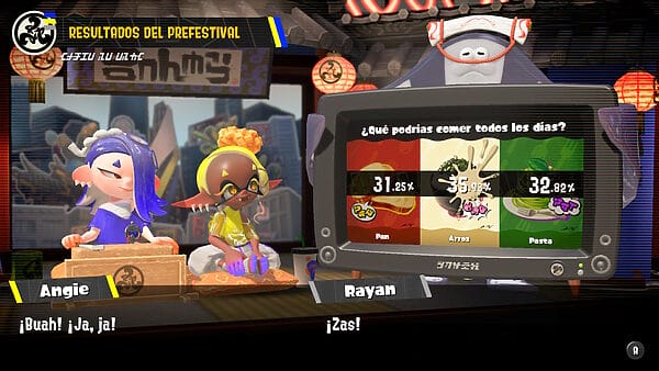 Del 10 de agosto a las 2 de la madrugada hasta el 12 a la misma hora se celebró el penúltimo festival de Splatoon 3. Con la pregunta «¿Qué podrías comer todos los días?» por tema, las opciones por las que tomar partido fueron pan, arroz y pasta. Cada opción fue representada con el color de tinta rojo, blanco y verde respectivamente.