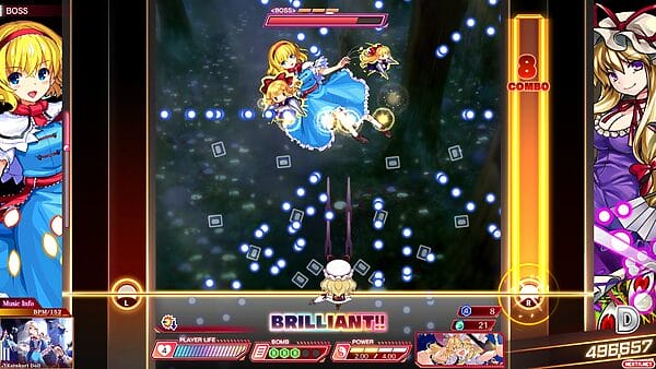 Siempre he defendido que a la franquicia de Team Shanghai Alice la sostienen dos pilares principales: la música y sus personajes. Mientras se mantengan esos elementos, puedes hacer un juego del género que quieras, ya sea un clon de Mario Kart, dungeon crawlers, juegos de peleas o Danmakus de Puzzle Bobble. Todos ellos tienen los personajes de la franquicia y la música como cimientos sobre los que construir. Y en ese sentido Touhou Danmaku Kagura Phantasia Lost apuesta por ir a lo básico y hacer un juego de ritmo con canciones de los juegos originales, canciones compuestas exclusivamente para este título y un buen montón de las canciones más famosas que ha ido creando la comunidad a lo largo de todos estos años.