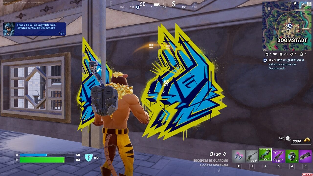 Tan solo tienes que hacer 5 grafitis en el suelo o paredes de Doomstadt. Para hacer grafitis haz de seleccionarlos desde el mismo menú que el de hacer gestos.
