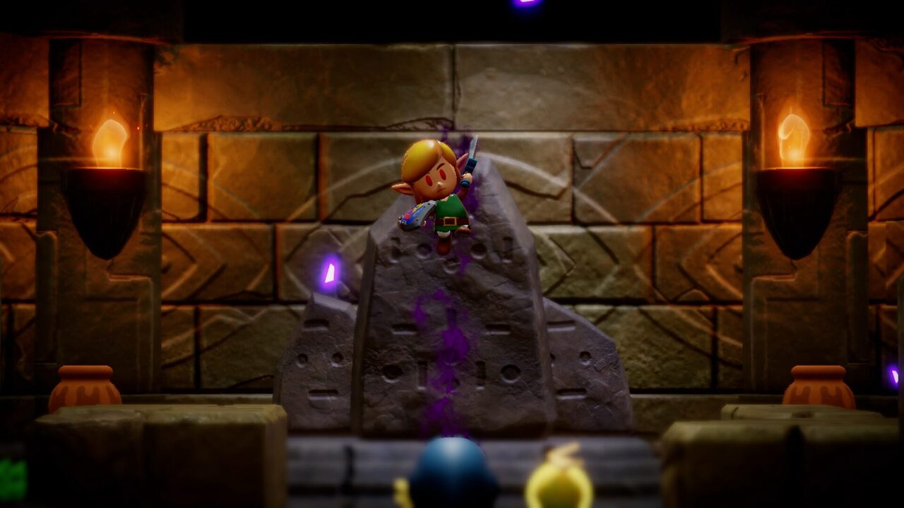 Que contar a aquellos jugadores de Link’s Awakening Remake de esta estética de juguete (llamado Pin y Pon por su parecido a estos juguetes) combinada con el efecto tilt shift, que hace de ilusión óptica para hacernos creer que lo que vemos es un Hyrule en pequeño como si de un diorama se tratara. Según vamos andando nos damos cuenta que no parece acabar hasta encontrarnos con una brecha de vacío, en la cuál podremos entrar y ver como toda gravedad y lógica desaparece.