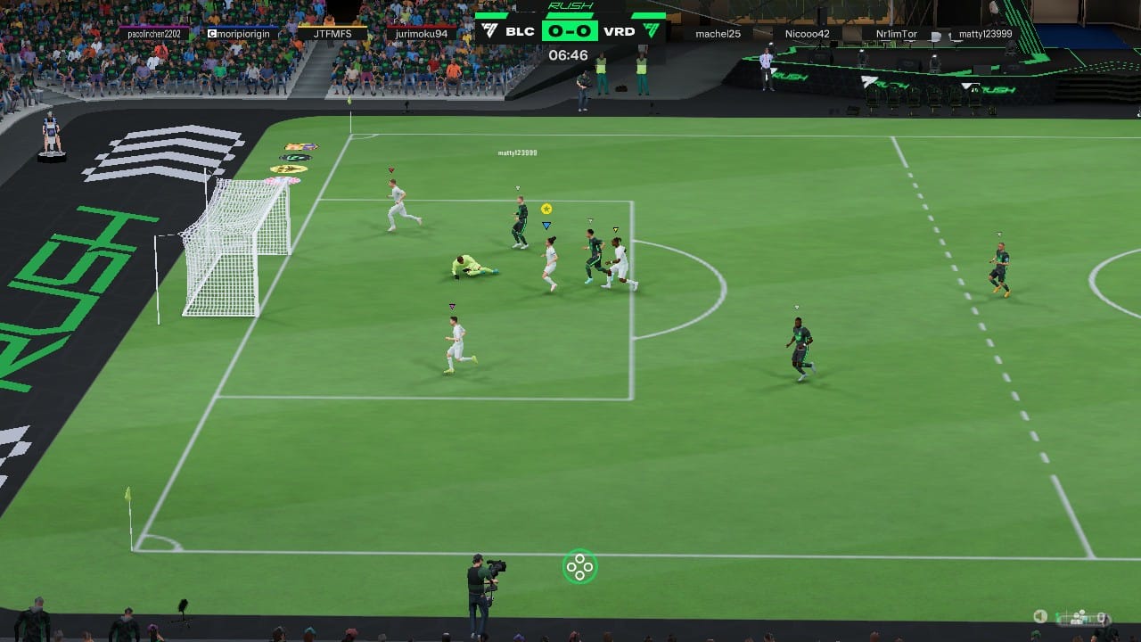 Pero son sobre todo las limitadas dimensiones del campo las que hacen que los encuentros, que constan de un solo período, terminen con resultados finales generalmente abultados, sean muy dinámicos y enormemente divertidos, lo que, en mi opinión, convierte a Rush en la mejor forma de disfrutar de partidas rápidas sueltas en nuestras Nintendo Switch donde y cuando queramos. Sin embargo, la apuesta de Electronic Arts por Rush va más allá y ha integrado este formato en todos los modos principales de EA Sports FC 25. Personalmente creo que es todo un acierto, pues aporta una manera ágil con la que progresar en Carrera, Ultimate Team o Clubes. Aunque en los dos últimos casos dependes de encontrar otras personas con las que jugar online.
