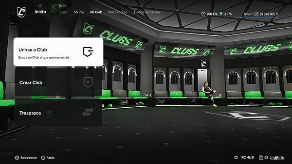 En Clubes regresa (bueno, en Switch debuta) el temido descenso y el menú recibe un rediseño importante con la denominada sede del club, que recrea un vestuario donde puedes interactuar con tus compis de equipo, y una nueva distribución de secciones que, la verdad, agiliza la navegación por ellas con respecto a la del curso anterior.