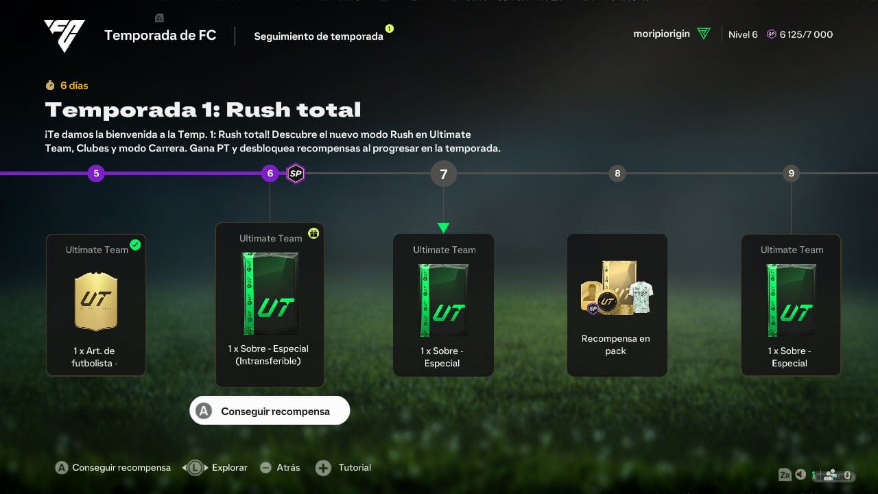 Como el año pasado, esto también tiene impacto directo en nuestro progreso, sobre todo en Ultimate Team, tanto en enfrentamientos como en el mercado de traspasos. Afortunadamente, otra de las novedades de FC 25 es un sistema de temporadas renovado que nos permite ganar recompensas y experiencia cumpliendo objetivos en cualquiera de los modos de juego. Podemos ver estos objetivos y nuestro progreso desde los menús principales de cada modalidad pulsando el botón -, que nos da acceso al FC HUB, donde también podemos comprobar los diferentes retos que debemos superar para seguir evolucionando.