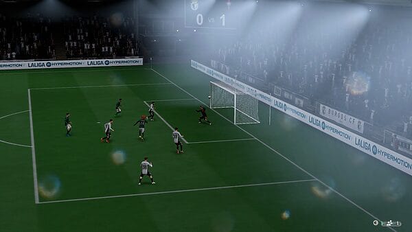 Pero, a pesar de todas estas cuestiones negativas que acabo de citar, la sensación que me deja el ponerme a los mandos en EA Sports FC 25 es de diversión. Y es que el juego permite modificar gran cantidad de parámetros para ajustar la experiencia a tu gusto. Especialmente útil me ha parecido la inclusión del tipo de jugabilidad Simulación, no disponible en los modos online, que aporta un ritmo más pausado. Esto suele evitar un poco la impresión de correcalles arcade propia de la saga y, cuando encuentras el nivel de dificultad apropiado (el salto entre fácil y difícil sigue siendo acusado a pesar de contar con 6 categorías), permite disfrutar de unos enfrentamientos más realistas.