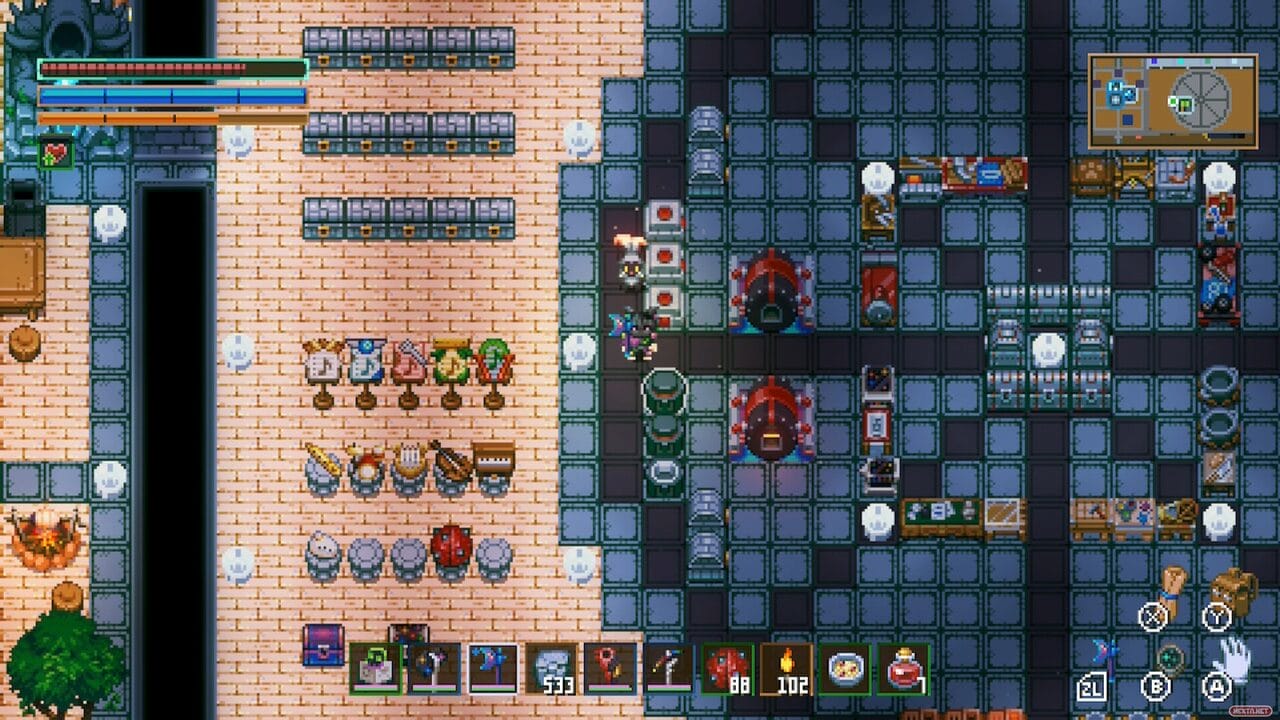 Decir que me encanta el sistema de mascotas, pero el de objetos me desilusionó un poco inicialmente. Aquí viene cuando menciono directamente Terraria (con el que también tiene una colaboración), porque me encanta cómo este juego te puede dar una espada, un pico, o lo que sea, encontrar uno de la misma clase y que sea radicalmente distinto en cuanto a sus estadísticas. Entiendo que esto se ha hecho así para cuidar el equilibrio concreto de Core Keeper, sumado a que llegado a un punto vas a poder mejorar esos objetos para que tengan mejores estadísticas. Pero es cierto que cuando te encuentras el mismo anillo, armadura, etc., 20 veces, pues puede llegar un poco a cansar. Insisto: estoy seguro de que se ha hecho con fin de mantener el equilibrio, y luego está que hay ciertos objetos que son muy raros de obtener; ahí es donde se compensa todo.