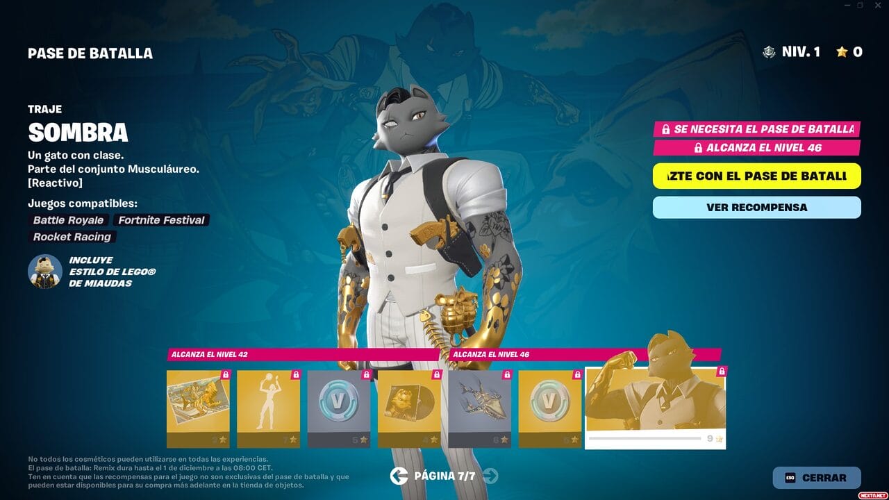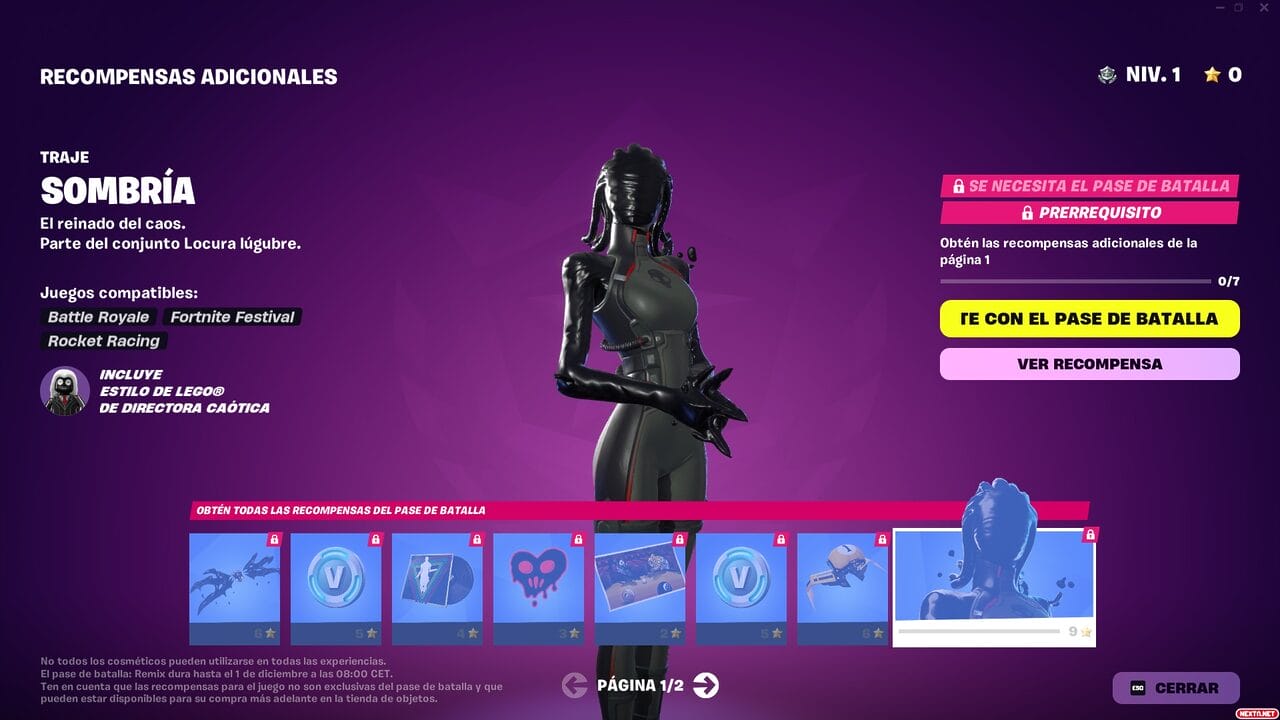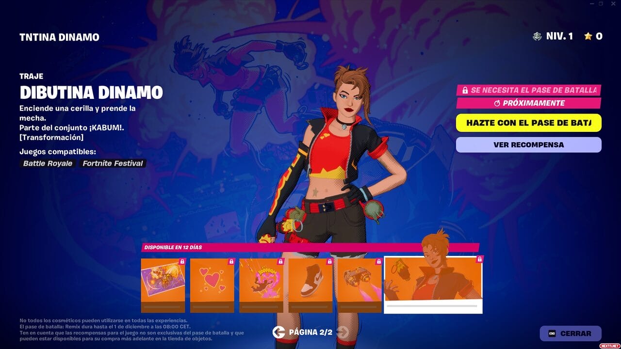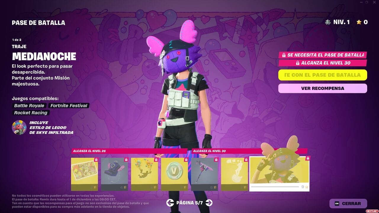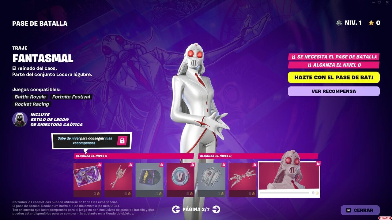 Al igual que en temporadas anteriores, el Pase de Batalla de Remix Capítulo 2 de Fortnite cuesta 950 paVos, con la posibilidad de conseguir 1000 paVos, aspectos y cosméticos exclusivos (durante al menos 18 meses) conforme subas de nivel al jugar a cualquiera de los modos de juegos de Fortnite o las Islas de Creadores de la comunidad. Como también viene siendo habitual, otra de las formas de conseguir el Pase de batalla de Fortnite Remix Capítulo 2 es suscribiéndote durante un mes al Club de Fortnite. Esta suscripción mensual del Battle Royale de Epic que ofrece el Pase de Batalla, 1000 paVos, una skin con todos sus accesorios y el Pase de Batalla de Rocket League por 11,99 €. Las recompensas que podrás conseguir en este Pase de Batalla son las siguientes: