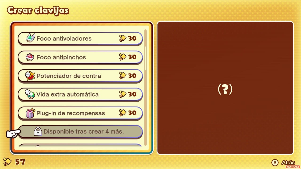 - Simplificador de contra: se consigue al desbloquear las clavijas de combate. Permite mantener pulsado el botón para facilitar los contrataques: el salto dura más tiempo en el aire y el martillo se agranda. Cargas: 10. Turnos de recarga: 20.