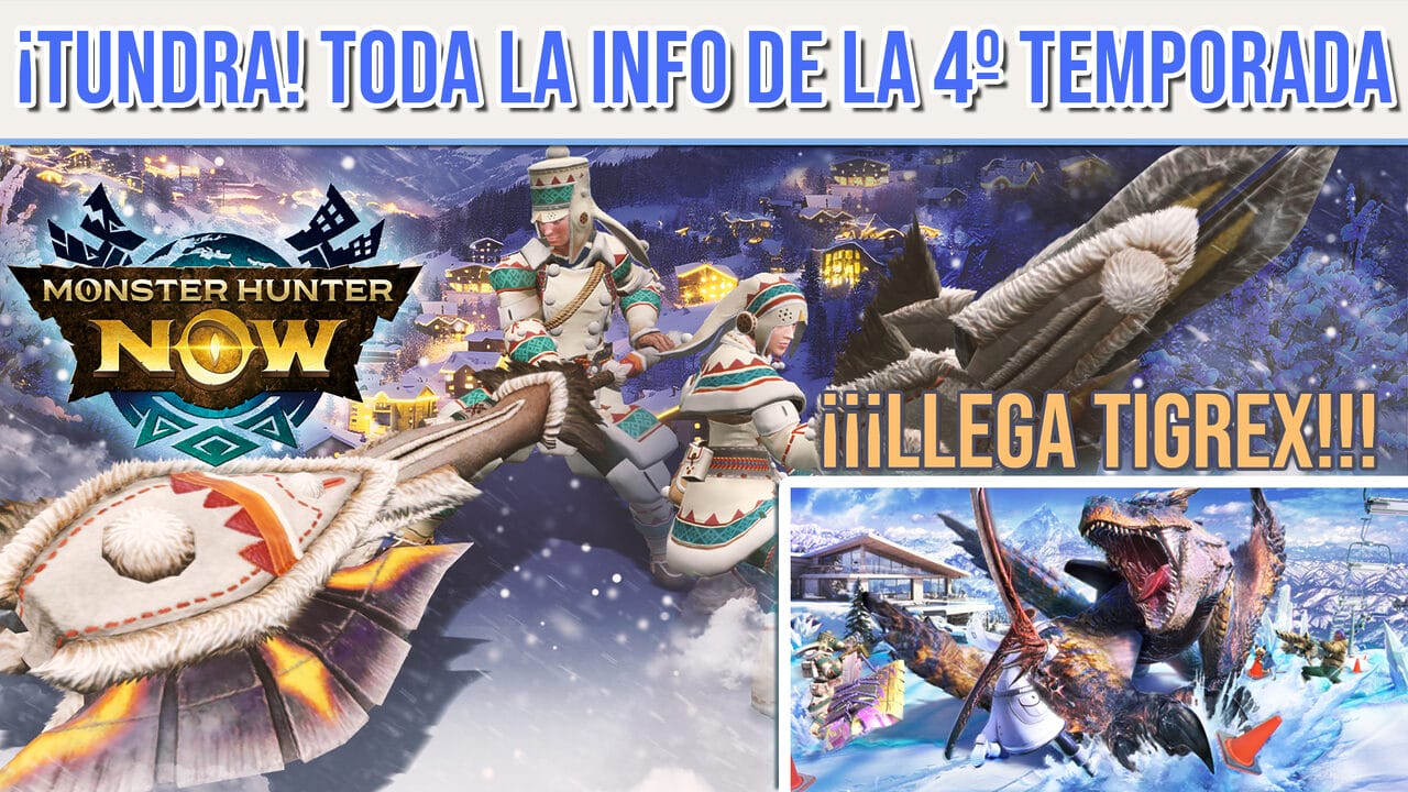 No me ves en estos momentos, ¡pero estoy dando saltos de alegría y dando volteretas hacia atrás! Hace unos días pudimos asistir a una presentación en la que nos avanzaron todos los detalles que se avecinan a la cuarta temporada de Monster Hunter NOW… ¡donde se desveló que por fin liberarán mi querida Hacha Espada! Y no es lo único que traerá la denominada «Roars from the Winderwind» (Rugidos del viento invernal), pues tenemos nuevas e interesantes funciones que contaros, como por ejemplo la personalización de nuestro camarada felyne, al que podremos tener en nuestra casa gracias a la tecnología RA, la llegada del invernal hábitat Tundra, también un nuevo sistema para ofrecer ayuda a nuestros amigos, o la inclusión de nuevos monstruos. ¿Ese de ahí es Tigrex? ¡En efecto!
