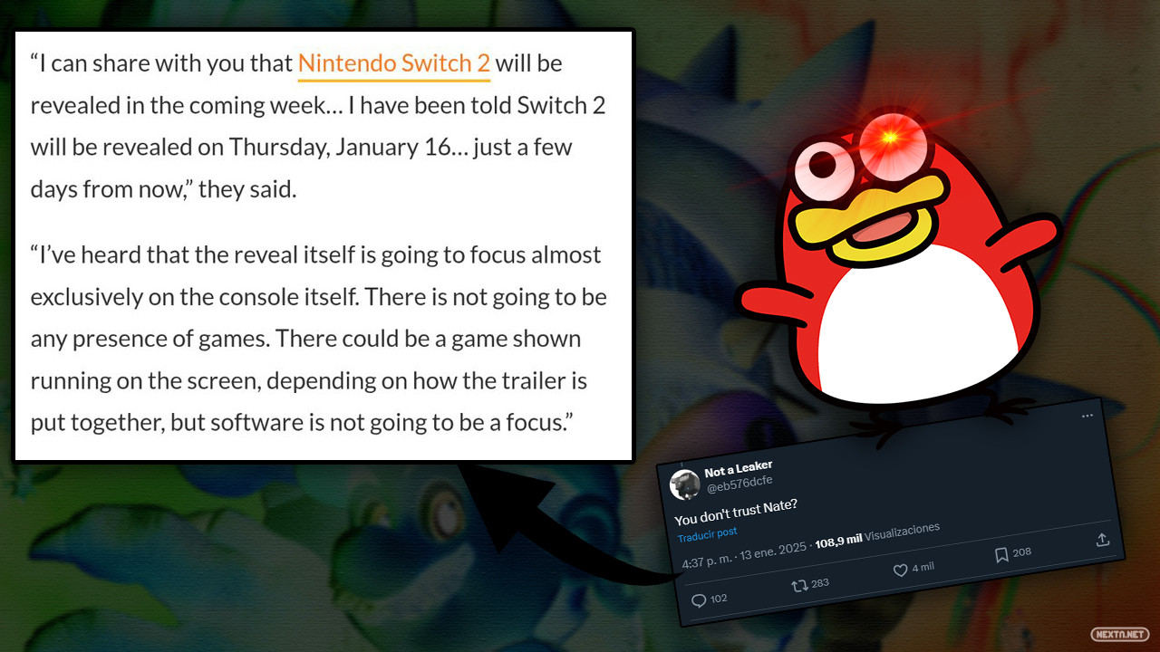 Aún no nos habíamos recuperado de la filtración del dock de los osos polares y ya tenemos otra noticia de Nintendo Switch 2 entre manos. Esta vez parece que va a ser la buena para la ansiada fecha de revelación, pues el leaker NatetheHate ha hablado, Pyoro parece apostar por esa fecha y Eurogamer también está en el barco.