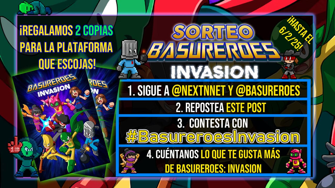 Para no hacer más larga la página principal de este artículo, encontrarás las bases completas, de imprescindible lectura, en la página número 2 de este artículo, titulada «BASES COMPLETAS DEL SORTEO #BasureroesInvasion 31/1/25 – 6/2/25». Básicamente lo que tienes que hacer para ganar una de las dos copias de Basureroes: Invasion que sorteamos está en esta página principal, pero en el texto de la siguiente página explicamos cualquier limitación adicional que pudiera haber. Se entenderá que si estás participando es porque conoces y estás de acuerdo con las bases completas comentadas en la mencionada página de bases.
