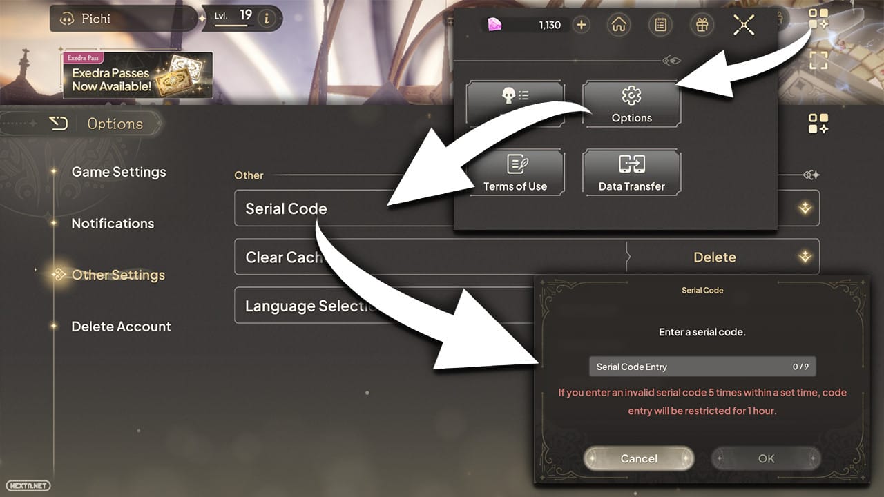 - Ahora lo único que te falta es acceder a «Serial Code» e introducir allí el código que quieras canjear.