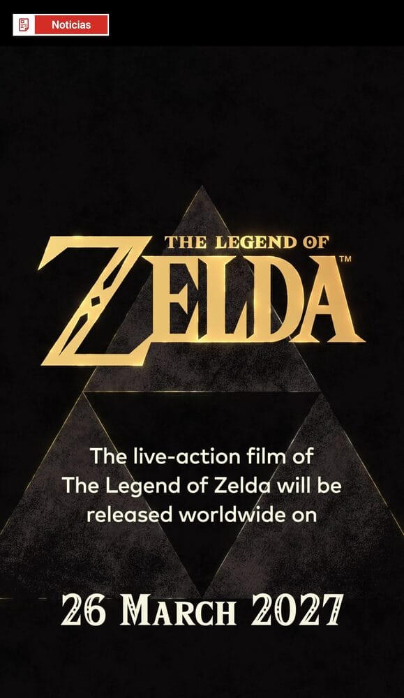 El Nintendo Direct nos ha dejado una noticia tan sorprendente como inesperada: Nintendo Today. Una app para dispositivos móviles con la que estar al día de todas las novedades nintenderas. Pues bien, nadie podría imaginarse un estreno mejor. No en vano, la Gran N acaba de utilizar dicha aplicación para confirmar que la película de acción real de The Legend of Zelda llegará a los cines el 26 de marzo de 2027. Sí, habéis leído bien. ¡La peli de Zelda ya tiene fecha de estreno! Por si fuera poco, al abrir la noticia se nos presenta un pequeño avance de algo menos de 30 segundos en el que aparece la Trifuerza acompañada del mítico arreglo música en 8 bits de Koji Kondo.