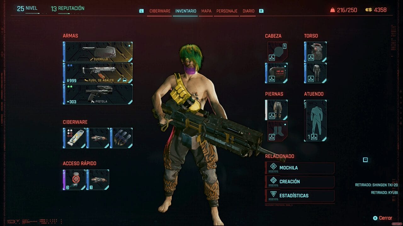 Si en algo tiene V ventaja sobre Geralt, es en poder modificar el personaje y sus posibilidades en una mayor profundidad, detalle y capas. Sin embargo, no es que te sea necesario para completar la aventura principal, o su DLC. Simplemente, cuanto más avanzas, V se hace más y más invencible gracias a la colección de armas que va consiguiendo en su viaje, incluso no hace falta mucho revisar tiendas en busca de equipamiento para hacerte aún más fuerte, te vale con el que te vas encontrando, aunque indudablemente te hará las cosas más fáciles.