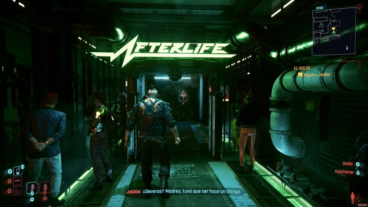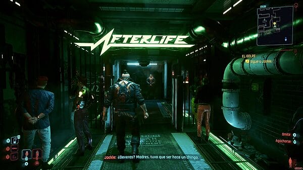 En mi incursión como V, he jugado en casi todo momento en modo calidad, sin haber visto demasiadas caídas de FPS, y sin que me hayan molestado en absoluto. Acerca de esto, he de decir que no soy de los que se agobian o lanzan gritos hacia el cielo cuando un juego tiene una leve caída de imágenes por segundo, siempre que sean puntuales y no afecten en absoluto a la jugabilidad o a la experiencia en general. Es decir, una caída importante podría estropearte una partida, pero también eliminar la inmersión argumental, porque estarías fijándote, de repente, en ese bajón, en lugar de en lo que te están explicando las gentes del videojuego en cuestión. No es algo que haya sentido en ningún momento en mi paso por Night City.