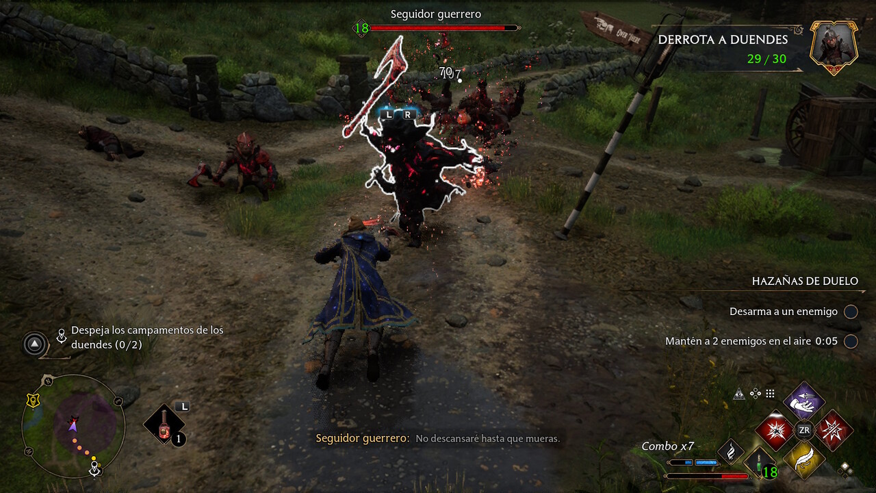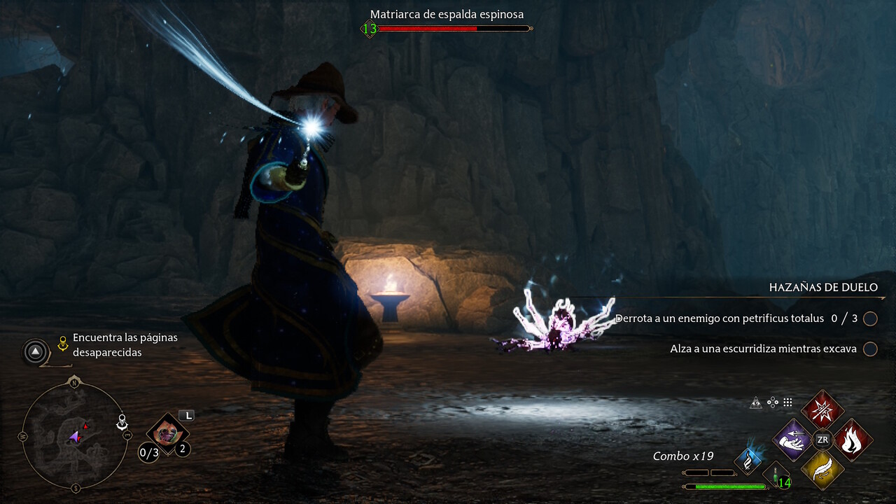 Para equipar los hechizos contamos con un sistema de acceso rápido asignado a diversos botones a lo Diablo o Breath of The Wild. Pudiendo incluso asignar combinaciones diferentes y permitiéndonos alternar entre una u otra con tan solo presionar un botón. Y es que la magia también juega un papel crucial en el sistema de combate del juego. Siendo posible encadenar combos, realizar counters (previo bloqueo perfecto), esquivar ataques con nuestro «sentido arácnido» e incluso hilvanar cadenas mágicas de ataques. Por si fuera poco, la inclusión de la magia no se siente forzada. Todo lo contrario. ¿Tienes pensado sacar partido a las debilidades de los diferentes enemigos? Wingardium Leviosa, Expelliarmus, Accio… Necesitarás conocer de pe a pa cada encantamiento y los puntos débiles de cada contrincante para poder maximizar el impacto de tus propios ataques.
