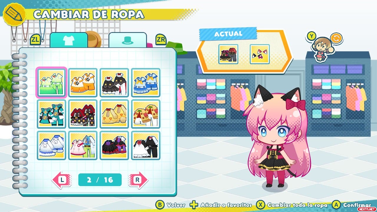 Otra de las novedades respecto a la primera versión del juego, es la posibilidad de personalizar la ropa y accesorios de Miku y sus amigos, así como distintos elementos de su habitación y las canciones que suenan al hacer los puzles. Para conseguir tanto la ropa como los muebles, hay que completar puzles cumpliendo una serie de requisitos. Esto añade dos cosas al juego: por un lado una sensación de progresión, evitando que solamente sea hacer picross por hacerlos, lo cual no es malo de por sí, dado que es el objetivo básico del título. Por otra parte, añade una capa de desafío y reto que de normal no existiría, más allá del reto personal de hacerlo bien, al no haber penalización de ningún tipo por fallar de otra manera. Aún con este reto, Hatsune Miku Logic Paint S+ es bastante permisivo al permitir hasta tres errores antes de fallar el objetivo asociado a los fallos. Y sin duda esta manga ancha es algo que también ayuda a los jugadores menos experimentados con los picross, pues uno de los fallos más gordos que encontramos es que no es nada amigable con los jugadores nuevos. Apenas hay puzles de 5×5 que sirvan para afianzar las mecánicas básicas de resolución. De 10×10 hay alguno más, pero rápidamente la dificultad salta a los de 15×15 y 20×20.