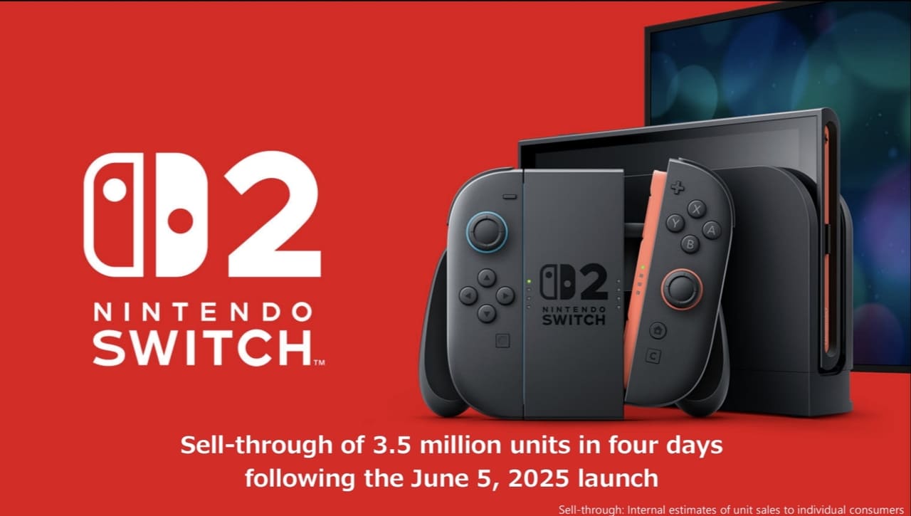 Que la sucesora de la híbrida va como un tiro es algo a lo que ya apuntaba los datos compartidos hasta el momento. No obstante, la Gran N acaba de compartir sus resultados financieros correspondientes a los meses de abril a junio de 2025 (primer trimestre del año fiscal). Nintendo Switch 2 habría logrado vender 3,5 millones de unidades en sus primeros 4 días de vida. Convirtiéndose en la cifra global de ventas más elevada de los de Kioto en toda su historia. Por si fuera poco, Nintendo Switch (1) ha rozado el millón de consolas y los 25 millones de juegos (software) colocados.