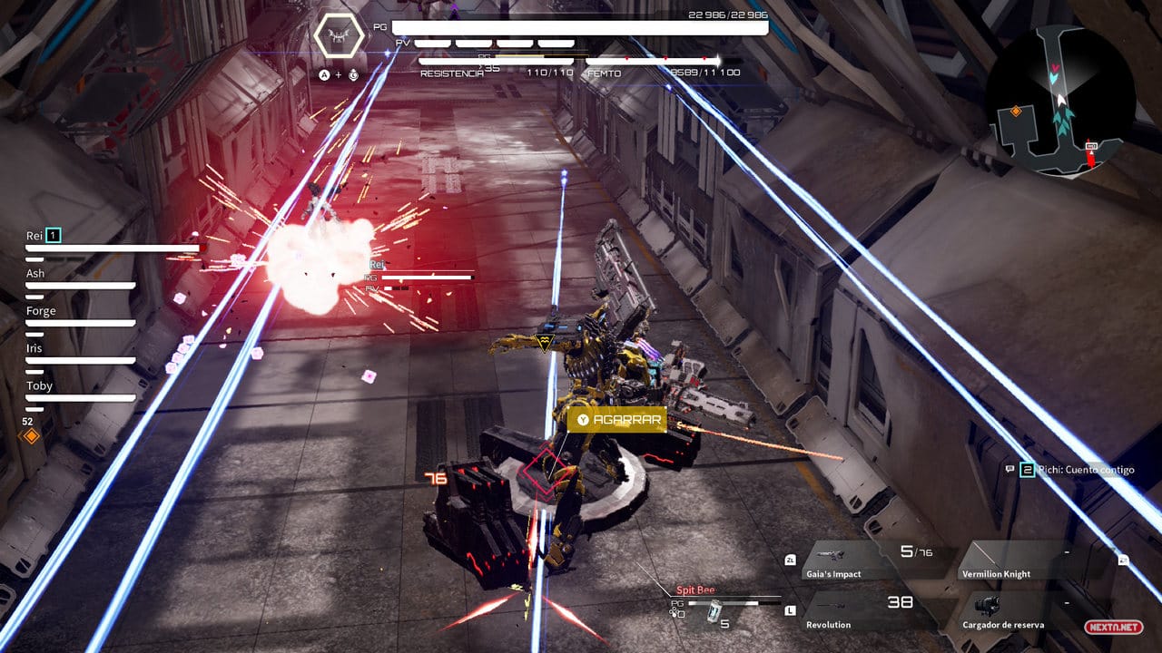 En esta entrega ponen a nuestra disposición un mundo abierto desafiante plagado de amenazas, a explorar desde el interior de un exotraje militar conocido como «Arsenal». No obstante, dicho traje no tiene nada definido y lo podemos modificar de pies a cabeza, tanto para que rinda mejor en combate como para que visualmente entre por los ojos. De cara a balancear esto, hicieron que cada pieza de armadura aporte cierta cantidad de memoria, la cual debemos emplear sabiamente, pues cada arma o módulo (equipables que mejoran tu «Arsenal»), requiere más o menos de dicha memoria y si sobrepasamos el límite de consumo, el rendimiento del exotraje se va al traste. Además, hay otros factores a tener en cuenta, como el peso de lo que llevas; mucho peso se traduce en una peor movilidad y en un mayor gasto de energía, a cambio de que tus ataques cuerpo a cuerpo hagan temblar a cualquiera. Sobra decir que hay una variedad de armas inmensa que va desde bazucas a espadas láser y que los enemigos pueden ser más susceptibles al daño láser o al físico, lo que empuja a probar muchas combinaciones. Por cierto, es importante mencionar la presencia de escudos con posibilidad de hacer «parry» y que, además de especializarse en unos roles u otros, hay corazas que cuentan con habilidades especiales que os animamos a descubrir. Por ejemplo, es posible sacar unos propulsores adicionales con forma de alas muy molonas que, a cambio de gastar femto, te permiten atravesar escenarios como alma que lleva el diablo.
