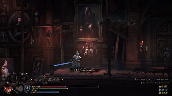Es evidente que Mandragora: Whispers of the Witch Tree basa su apartado artístico, guiños incluidos, en franquicias de la talla de Dark Souls, Diablo o incluso Castlevania. Reflejando a la perfección un oscuro y decadente mundo en 2.5D repleto de detalles, juegos de luces y vibrantes escenas en segundo plano. Y es que la contraposición de tonalidades, en donde predomina una paleta oscura y algo apagada, hace que todos los elementos presentes en pantalla luzcan aún mejor. Sí, en más de una ocasión nos hemos quedado unos segundos boquiabiertos en determinadas localizaciones. Y ello a pesar de encontrarnos, a falta de un futurible parche para Switch 2, ante el port más limitado y borroso de todos los presentes en consolas.