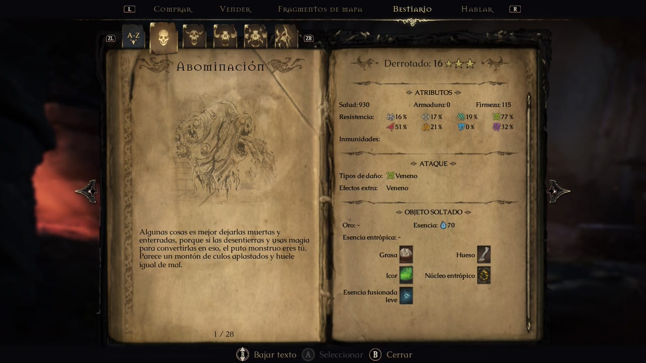 Por si fuera poco, el juego nos presenta una segunda capa RPG gracias a los personajes que se van asentando en nuestro campamento base. Pudiendo desde preparar deliciosos manjares, hasta comprar fragmentos del mapa, aceptar misiones, equiparnos con valiosas, y poderosas joyas, comprar y mejorar equipamiento, fabricar armas o incluso mejorar/desbloquear cientos de habilidades pasivas. Cuestiones, muchas de ellas, que nos permiten avanzar con mayor soltura a través de los portales de entropía situados a lo largo y ancho del título. Entropía que se erige como eje central del juego. Una energía oscura que lo corrompe todo y que, más allá de erosionar la realidad, es, como fuerza antagónica de Faelduum, la responsable del origen de las hordas de monstruos.