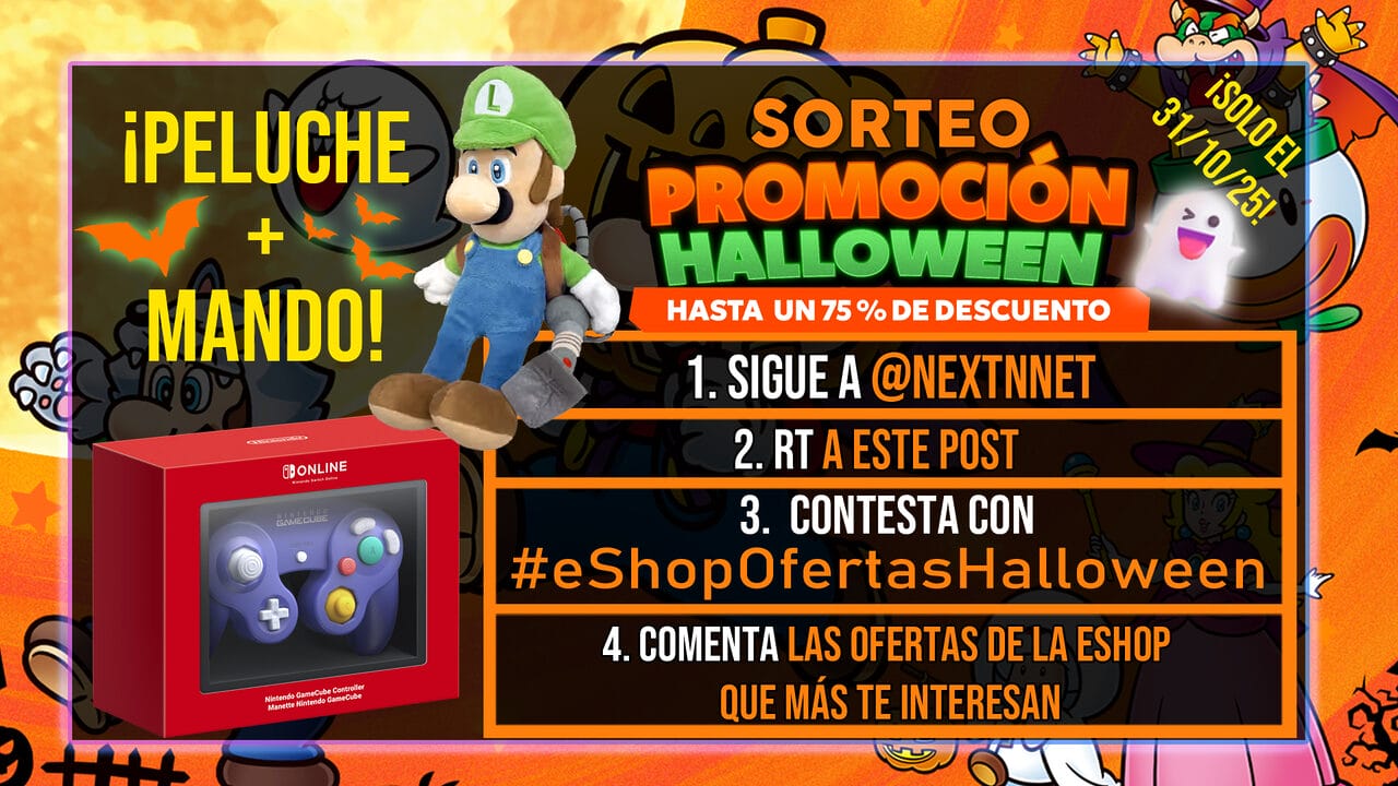 ¿Truco o trato? ¡Trato!, ¿no? A que te gustaría conseguir el mando de Nintendo GameCube y el peluche de Luigi con la Succionaentes que regalamos? Pues entonces no pierdas la oportunidad de participar en #eShopOfertasHalloween, un sorteo creado en honor a la increíble variedad y número de ofertas que puedes encontrar en la eShop de Nintendo Switch 1 y Nintendo Switch 2 hasta el 2 de noviembre. ¿Todavía no le has echado un ojo? ¡Pues no sé a qué esperas!