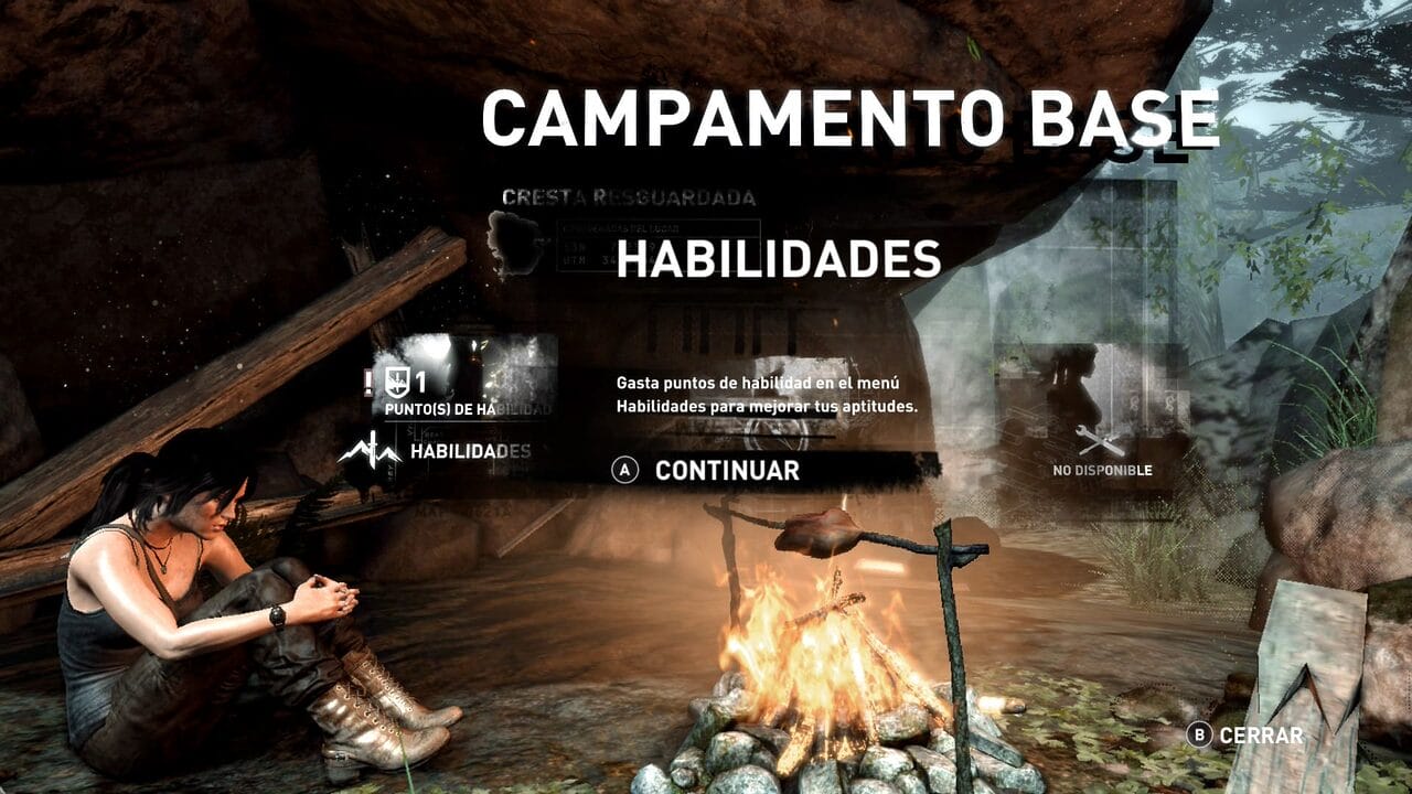 Por otro lado, también disponemos de un sistema que nos permite mejorar las habilidades y el equipamiento de Lara. El primero, gracias a un escueto árbol de habilidades desbloqueables, que se divide en tres ramas: Cazadora, Superviviente y Luchadora. Eso sí, para desbloquearlas necesitamos recolectar puntos durante la aventura. El segundo, y nos centramos en el armamento, canjeables a cambio de los materiales obtenidos al saquear cuerpos, cajas, etc.