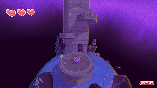 Así da comienzo esta divertida aventura, en la que recorreremos tres diferentes mundos con un aspecto simple pero resultón y que, aunque no son muchos, tienen una extensión más amplia de lo que cabría esperar. Están formados por diferentes zonas, muy diferenciadas entre sí, que vamos descubriendo según avanzamos en sus historías autoconclusivas. Historias en las que Hop interviene mientras busca insistentemente las piezas de aeronave que necesita (bueno, y los Drops Oscuros que hemos prometido buscar a cambio de carta blanca). Así, mientras recorremos estas extensas localizaciones, podemos conocer a numerosos personajes como conejos, nutricias o murciélagos, con diálogos cargados de humor y que han sido diseñados por Steven Sugar (artista que trabajó en la serie animada Steven Universe). Además, hay que remarcar el hecho de que, a pesar de ser un indie tan pequeño, el juego cuenta con doblaje en inglés.