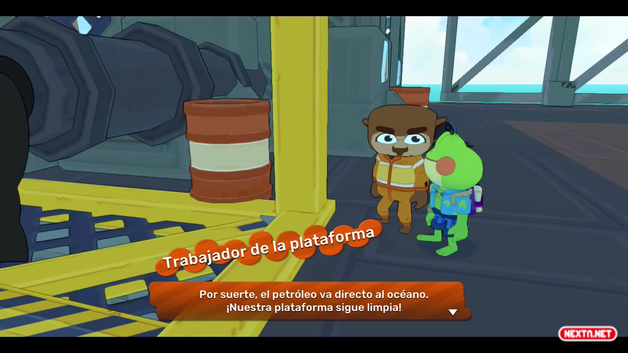 Pero no todo pueden ser alabanzas a esta aventura anfibia, también tiene algunas flaquezas que empañan el resultado final, tanto en lo técnico como en lo mecánico. En términos de rendimiento, el juego funciona bien en la mayor parte del tiempo, pero no es siempre. Big Hops alcanza las 60 imágenes por segundo (60 fps) casi sin pestañear en Nintendo Switch 2, mas esto no es del todo así en la Switch original, donde en determinados momentos hay algunos bajones de FPS que pueden ser más o menos relevantes. Y es que, aunque no son nada superescandaloso y podemos decir que son más bien puntuales, en el tramo final hay cierto momento en el que la jugabilidad sí se ve afectada. Durante el desenlace de la aventura, apenas los minutos finales, el rendimiento cae en picado, siendo bastante molesto e imposible de jugar si no supusiera este fragmento solo unos pocos minutos, pero estropeando irremediablemente, eso sí, el espectacular momento.