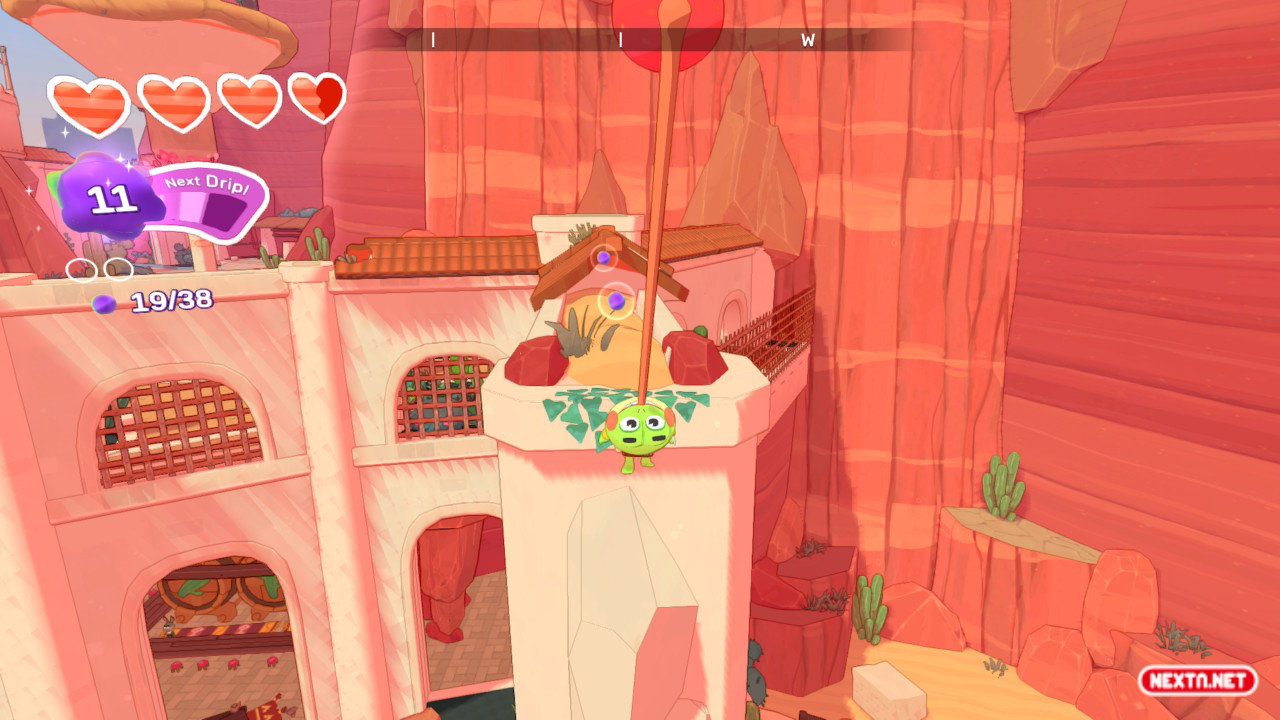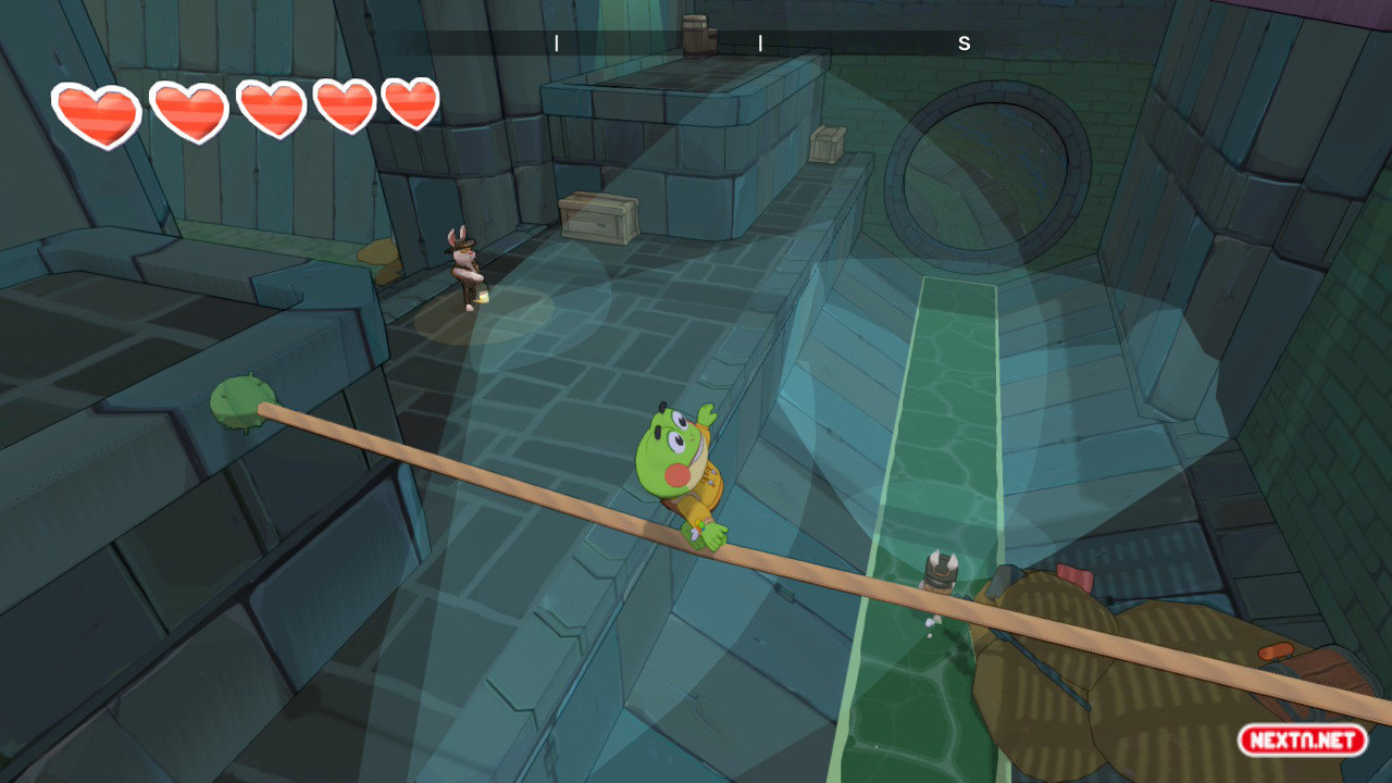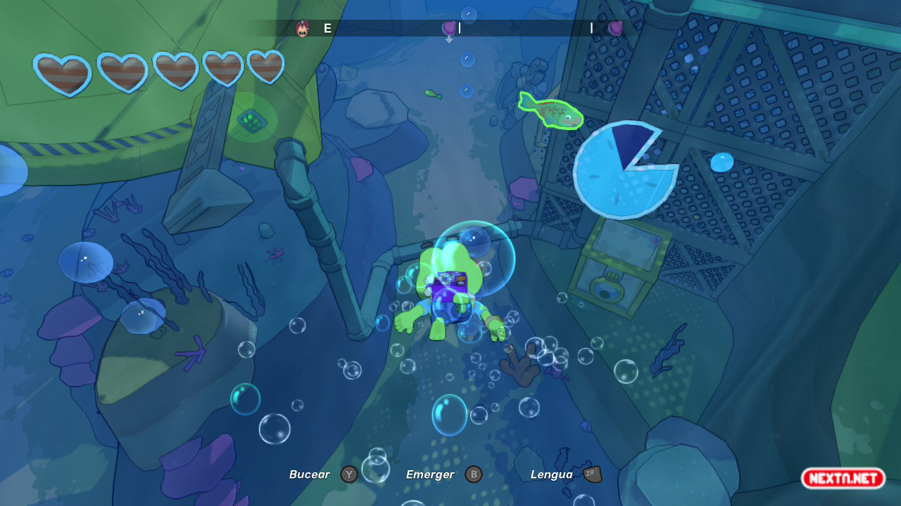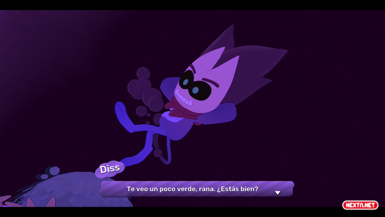 Hop es una rana un poco peculiar. No se le da muy bien ni nadar ni trepar (aunque desbloqueamos y mejoramos estas habilidades a lo largo de la aventura), aun así, su capacidad para correr, rodar, saltar o incluso deslizarse por las paredes es envidiable. Y es que, de lo primero que nos daremos cuenta al empezar a jugar es lo bien que se controla. Sus movimientos pueden acumular velocidad, afectando directamente a la distancia que recorremos al saltar y al deslizarnos corriendo por las paredes al más puro estilo Prince of Persia. Y todo esto sin estar teniendo en cuenta su lengua… Nuestro protagonista utiliza su lengua como si de una extremidad más fuera: abrir cofres, agarrar objetos lejanos, balancearse para superar obstáculos o incluso resolver rompecabezas.