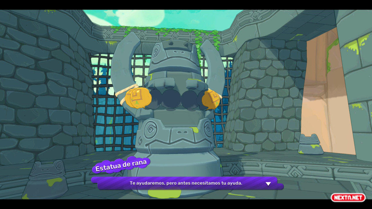 Pero no todo pueden ser alabanzas a esta aventura anfibia, también tiene algunas flaquezas que empañan el resultado final, tanto en lo técnico como en lo mecánico. En términos de rendimiento, el juego funciona bien en la mayor parte del tiempo, pero no es siempre. Big Hops alcanza las 60 imágenes por segundo (60 fps) casi sin pestañear en Nintendo Switch 2, mas esto no es del todo así en la Switch original, donde en determinados momentos hay algunos bajones de FPS que pueden ser más o menos relevantes. Y es que, aunque no son nada superescandaloso y podemos decir que son más bien puntuales, en el tramo final hay cierto momento en el que la jugabilidad sí se ve afectada. Durante el desenlace de la aventura, apenas los minutos finales, el rendimiento cae en picado, siendo bastante molesto e imposible de jugar si no supusiera este fragmento solo unos pocos minutos, pero estropeando irremediablemente, eso sí, el espectacular momento.
