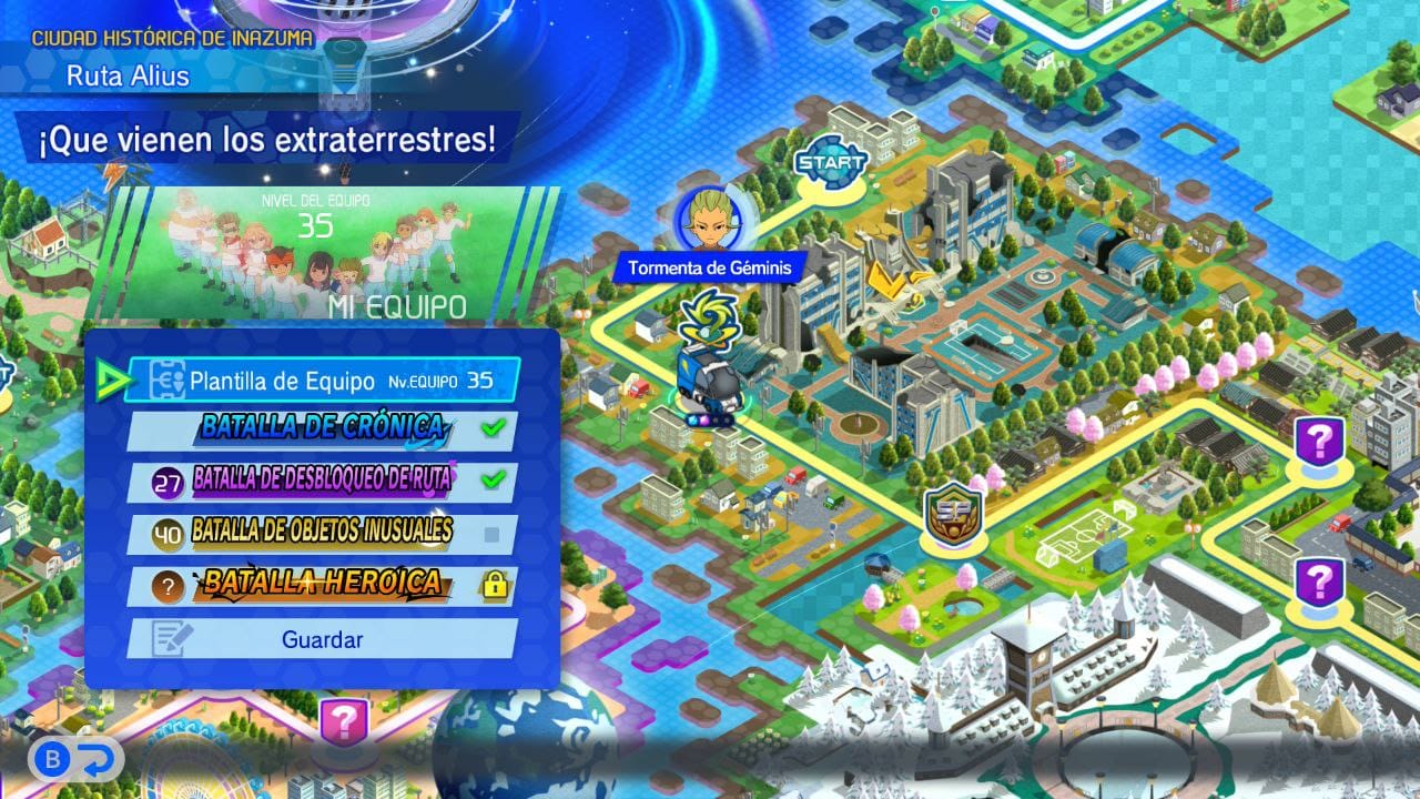 Pero hay mucho más en lo que profundizar, o más bien cierta variedad en las cosas que podemos hacer en Inazuma Eleven Victory Road. El modo en línea funciona bastante bien, sobre todo con la opción del juego cruzado con otras plataformas. También está el Estadio BB, la forma más directa de jugar al fútbol con equipos predeterminados (y opción de campaña con varios partidos seguidos). Por otro lado, la Estación Kizuna te permite crear tu propia ciudad, algo que está ligeramente bien, pero que realmente no aporta mucho dentro de lo que importa en este juego y que puede quedar como algo anecdótico.