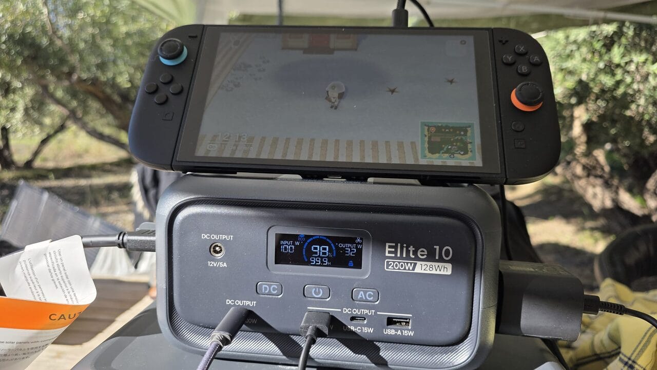 Como decía, esta toma admite hasta 100 W, por lo que la primera prueba que realicé fue conectarlo a una placa solar Bluetti PV-200, de 200 W, a ver qué ocurría con la seguridad de que no habría ningún problema al hacerlo. Y es que, al igual que el Bluetti Elite 30, no he encontrado problema al conectar placas solares de mayor potencia, dado que la toma tan solo aceptará los 100 W a los que está limitada, aunque he de decir que en un momento llegué a ver 101 W en la pantalla del dispositivo. Ese día, cargando una Nintendo Switch 2 y un par de móviles, fue una gozada ver cómo la energía no se terminaba nunca puesto que entraban más de 100 W por medio de la toma solar.
