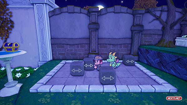 Al igual que en la saga del fontanero, nos desplazamos por las diferentes localizaciones interconectadas desde una perspectiva lateral. Para poder avanzar por estas zonas, debemos superar en ocasiones tanto pequeños obstáculos «plataformeros«, con pequeños saltos y zonas en movimientos, como algunos rompecabezas, para los cuales debemos explotar nuestro ingenio y aprovechar las habilidades únicas de nuestros compañeros. En ambos casos, la dificultad no es demasiado elevada la mayor parte del tiempo, aunque son disfrutadles de superar y resolver respectivamente.