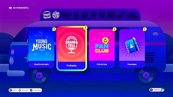 También podemos acceder a nuestra «furgoneta» donde tenemos unos desafíos de canto, una sección de Podcasts donde hablan de nuestro progreso, al club de fans, donde se puede leer opiniones y mensajes de los fans y, finalmente, un libro/agenda donde quedan registrados los personajes con los que nos encontramos.