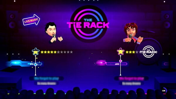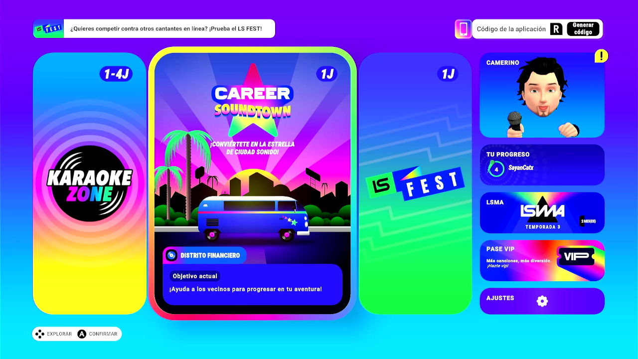 Como Nintendo Switch cuenta con solo dos puertos USB, en un principio sololo pueden jugar dos jugadores simultáneos. Para poder jugar 4 jugadores el juego tiene una app descargable en Google Play y la App Store de Apple. Una vez descargada la app solo hay que introducir el código de la aplicación que aparece en la pantalla de selección de modos del juego. Una pequeña prueba de sincronización, y listo. Cabe decir que tuvimos problemas con la app del móvil. Parece que no nos funcionaba bien la red, porque era notorio que cantando con el micrófono USB sacamos más puntuación que usando la app del móvil la mayoría de las veces.