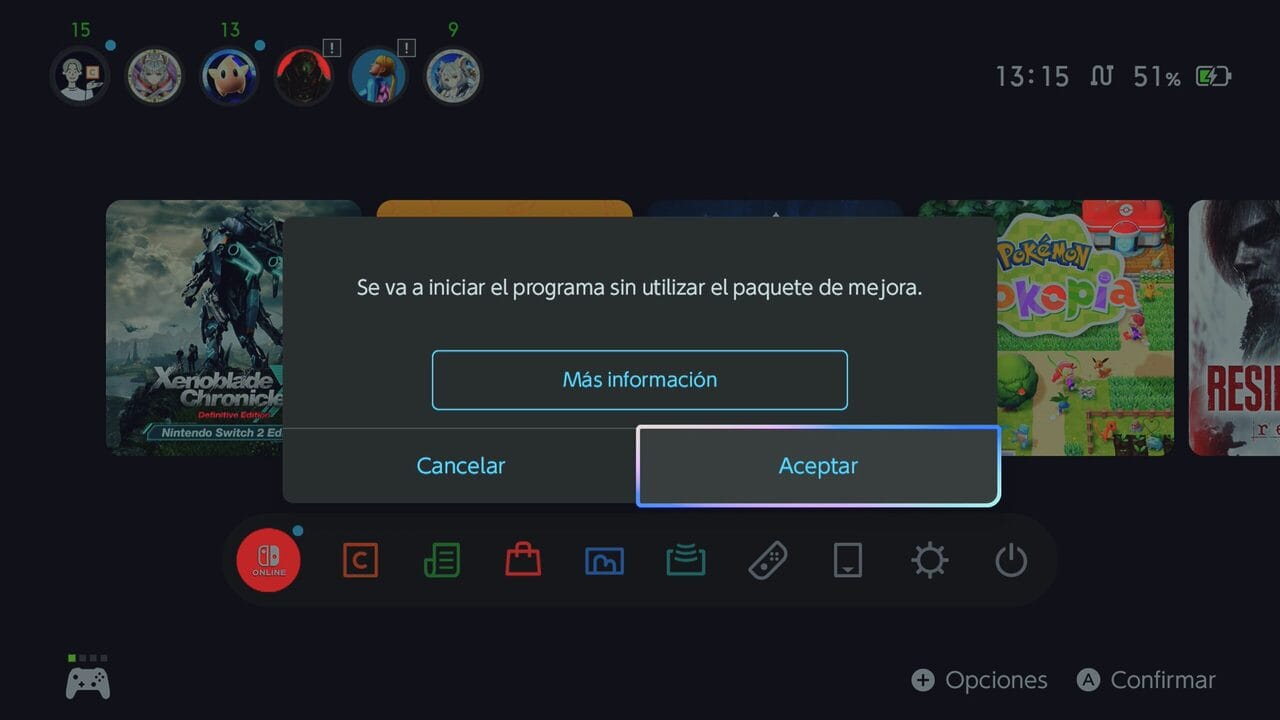 En pocas palabras, si no te importa perder fluidez cuando no juegas en la televisión, puede que te interese activar la opción «Mejora del modo portátil». Para ello tendrás que activar también la versión Nintendo Switch 1 del juego a través del menú de tarjetas de juego virtuales. Como decíamos al principio, hemos esperado al lanzamiento de la versión física porque han transcurrido dos meses desde que llegó la versión digital, incluso hemos tenido este modo rendimiento de la consola, ha pasado tiempo más que suficiente como para hacer que la versión en formato físico llegara con una actualización al respecto integrada.