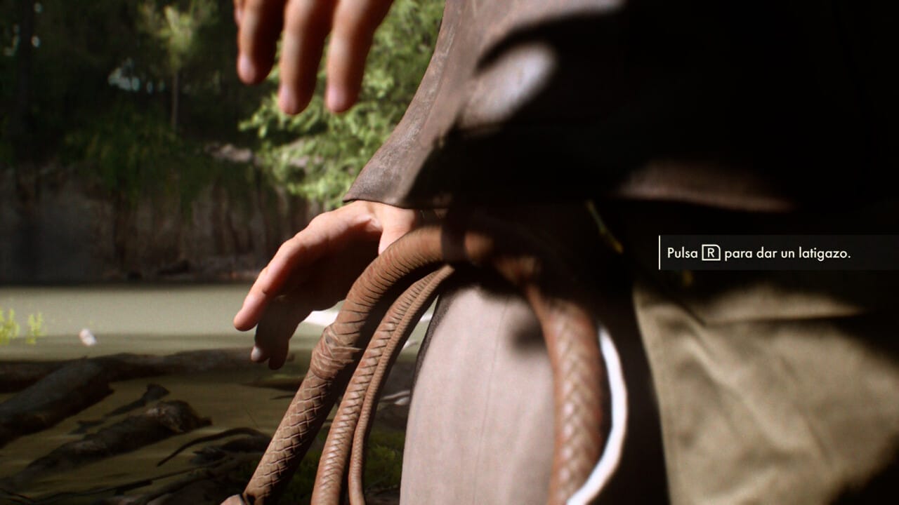 En términos mecánicos, los movimientos se sienten dinámicos y fluidos. Indi puede correr, escalar, saltar liarse a puñetazos e incluso usar el látigo para defenderse o alcanzar zonas de otra forma inaccesibles. Siempre y cuando, eso sí, demos un respiro a nuestra barra de adrenalina. Llegados a este punto nos centramos en los puños, ya que, pese a la variedad de armas e items, las secciones de acción se sienten algo caóticas y pesadas. Una vez más, tocará profundizar más en este apartado para ver hasta que punto logra integrarse con el resto de la aventura de una forma orgánica y natural.