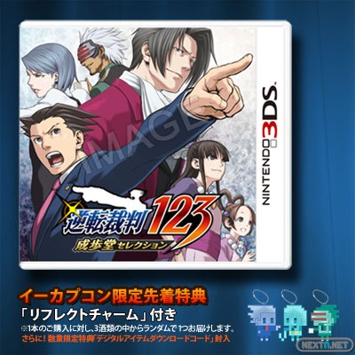 A la espera de ver las primeras capturas de pantalla del primer recopilatorio de la serie Ace Attorney adaptado a algunas de las posibilidades de 3DS, disponible a partir del 17 de abril en tierras niponas, aquí tenéis una imagen promocional que muestra el boxart del que finalmente se llamará Ace Attorney 123: Wright Selection.